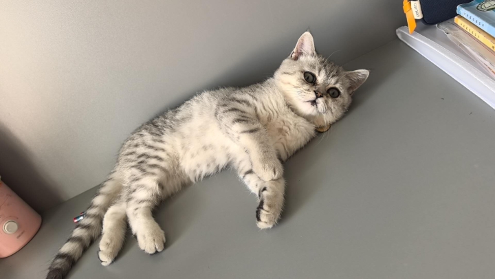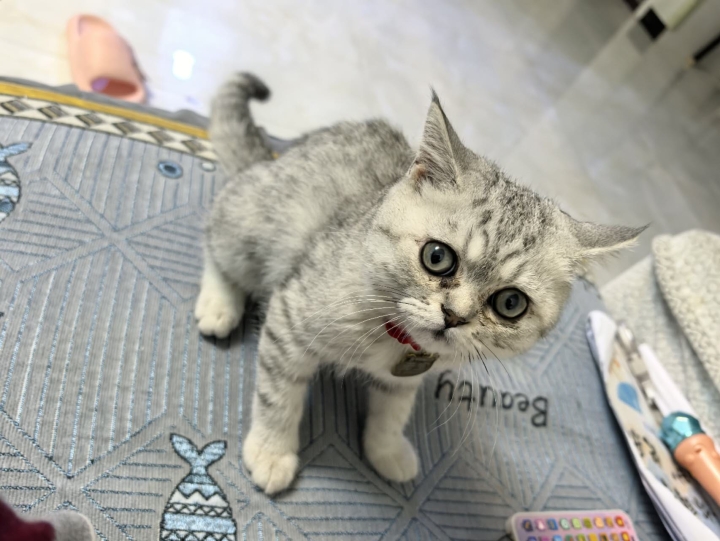 银渐层小猫一只四月龄,公猫,小猫健康。因本人近期猫毛过敏现出售价格好谈!
